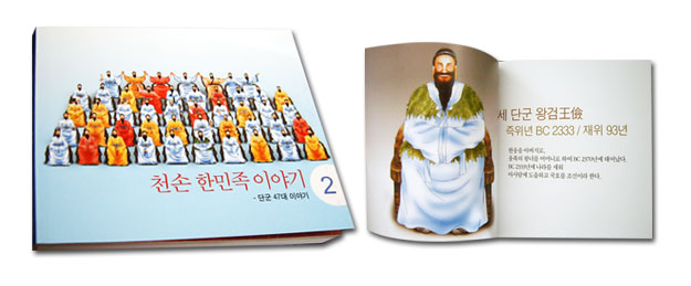 단군왕검의 탄생과 단군조선의 건국, 홍익인간 이화세계의 정신으로 찬란한 문명시대를 열었던 단군 47대의 이야기가 간결하고 이해하기 쉬운 문체로 실려 있고 글에 대한 내용을 함축해서 그림으로 보여주고 있다. 특히 단군 47 대 한 분 한 분의 얼굴이 모두 그림으로 그려져 있는 것은 이 책만의 가지는 특징이다.