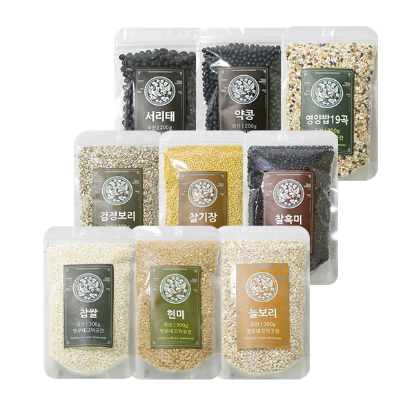[곡식곶간] 국내산 잡곡 9종세트/찹쌀,현미,늘보리,검정보리,찰기장,찰흑미,서리태,약콩,혼합19곡
